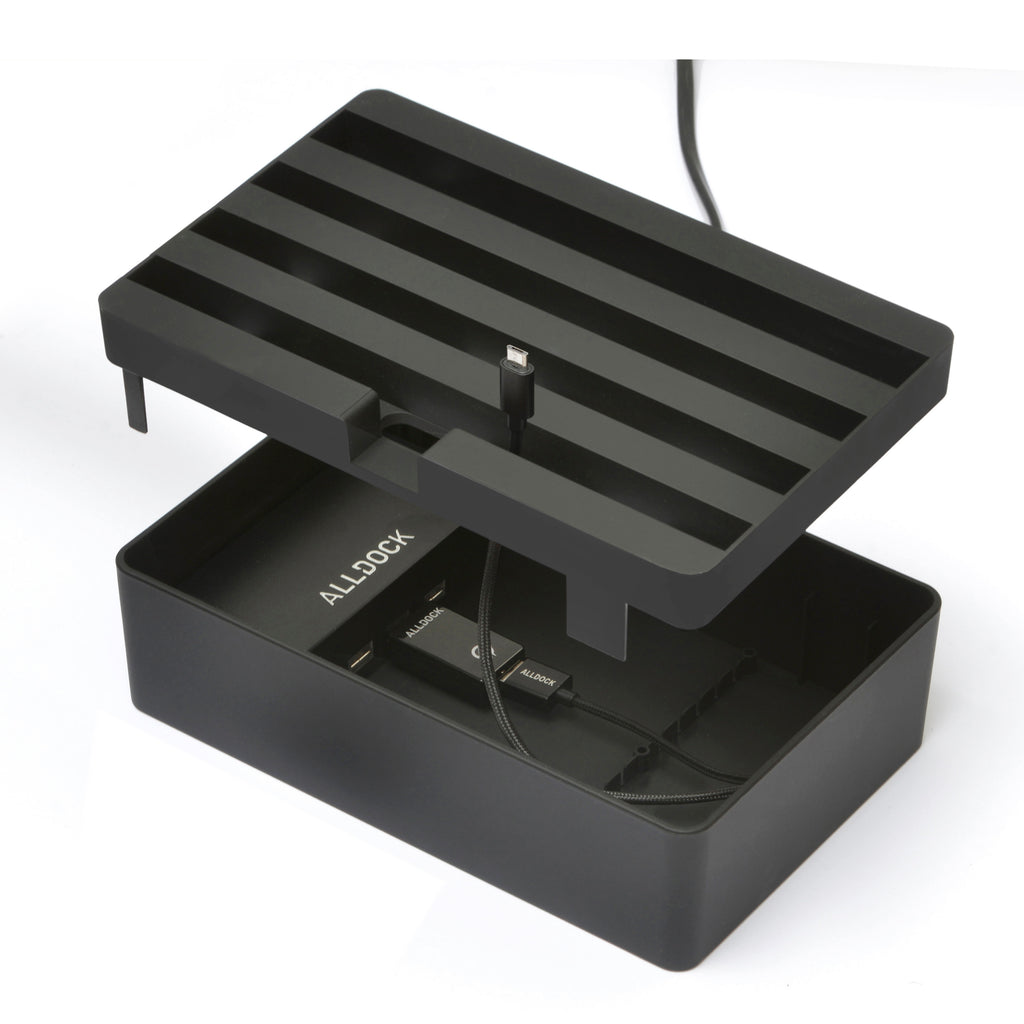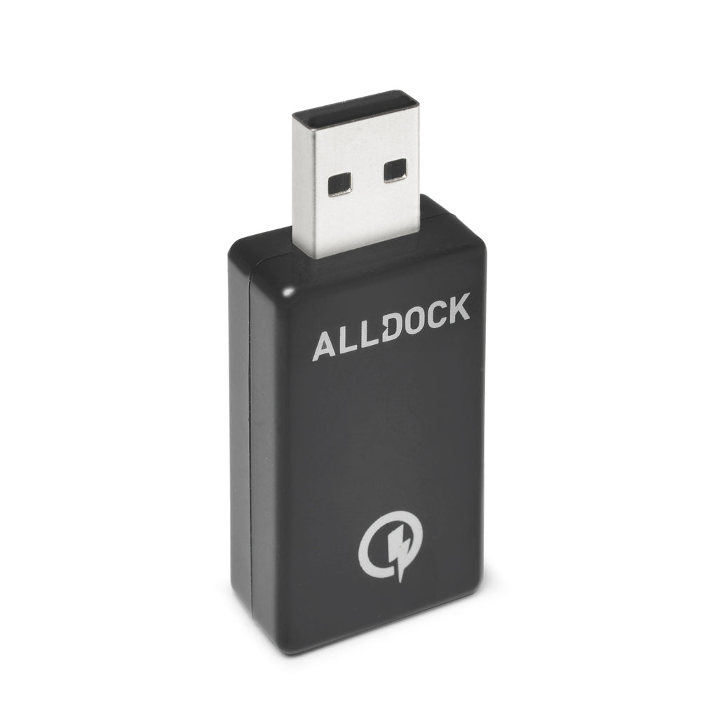 With our ALLDOCK Quick Charge 2.0 Adapter you can charge your mobile devices 75 % faster compared to a normal USB charger. You only have to connect the Quick Charge Adapter with the USB Port and then put your cable in it. In this way, your devices will be very quickly full charged! Your smartphone has to have a SoC (System on a Chip) in it, to be quick charged by our Adapter. Phone Models like Samsung Galaxy Note Edge, Samsung Galaxy Note 4, HTC One M8, LG Flex 2, Sony Xperia Z3, Motorola Droid Turbo, Nexus 6 and many more have these SoC and therefore can be charged with Quick Charge 2.0 Adapters. The Quick Charge Adapter fits perfectly in your ALLDOCK and is available in the colour black.
