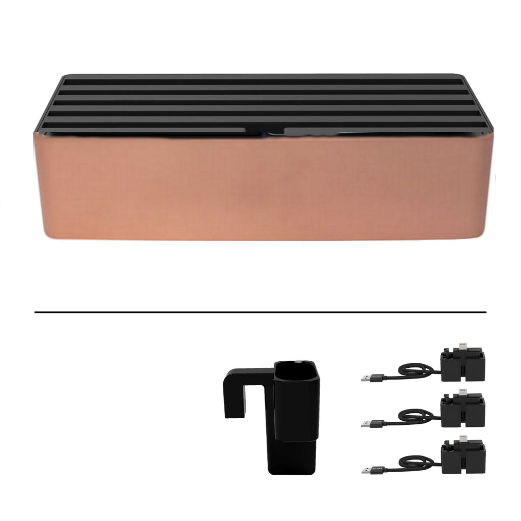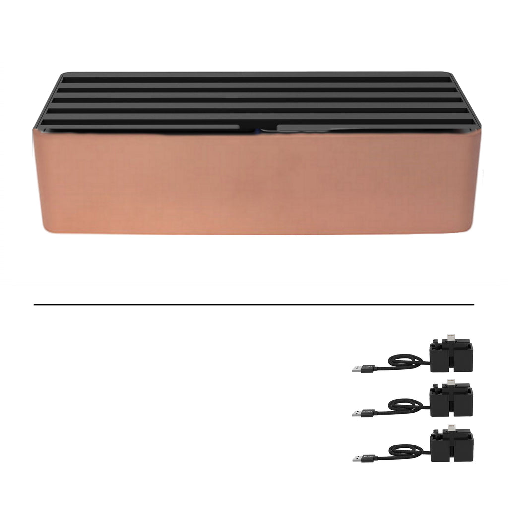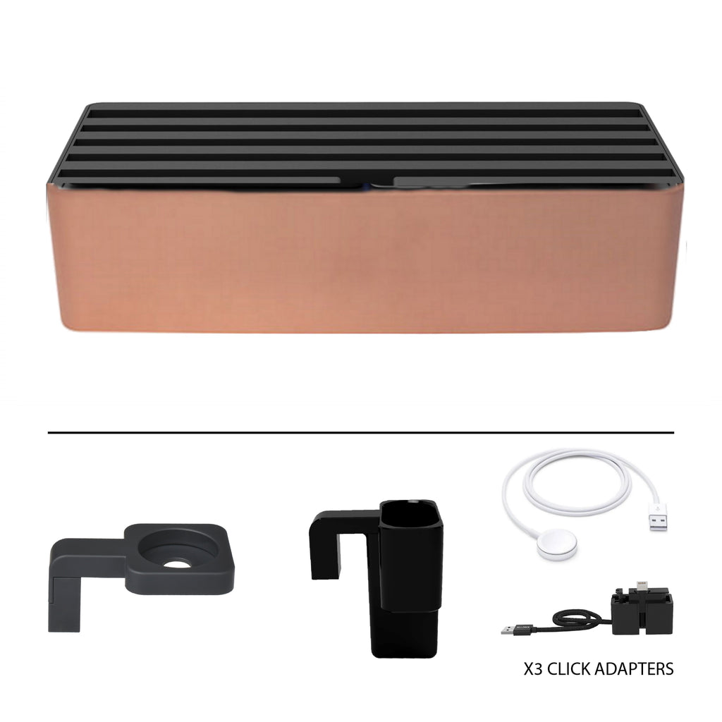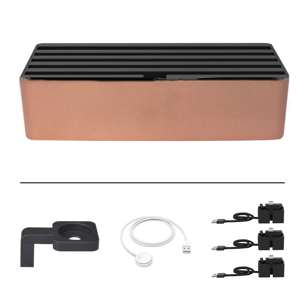 The ALLDOCK Classic Family Alu Rose Gold & White is a charger and docking station in one. The design is timelessly beautiful and all charging cables are hidden inside the ALLDOCK. Even large tablets can be docked and charged safely. In addition, the 6-port charger can be expanded with additional charging cables.