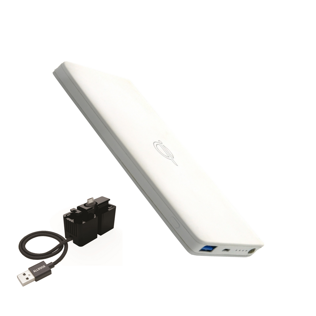 The ALLDOCK Wireless Power Bank also embeds a USB port, thus enabling every device to be charged also with cables.
