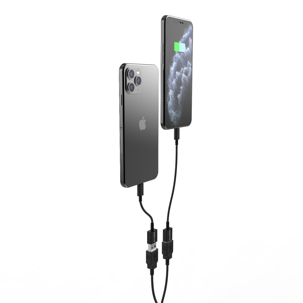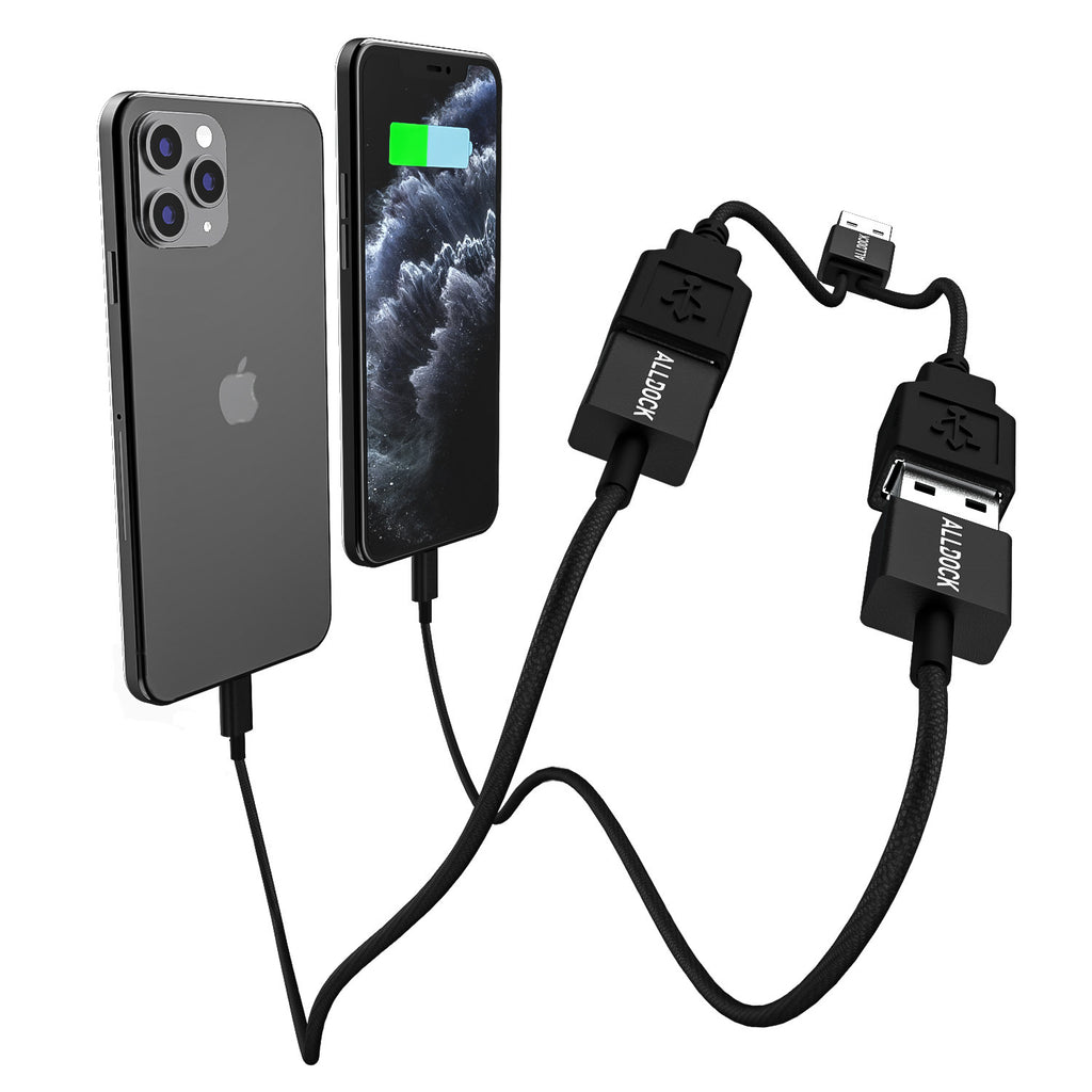 As all ALLDOCKs produce a standard 2.4Amp per USB port, split the port with this cable and have 1.2Amp x 2 feeding two Phones. Perfect also for sharing charge on your wearables.